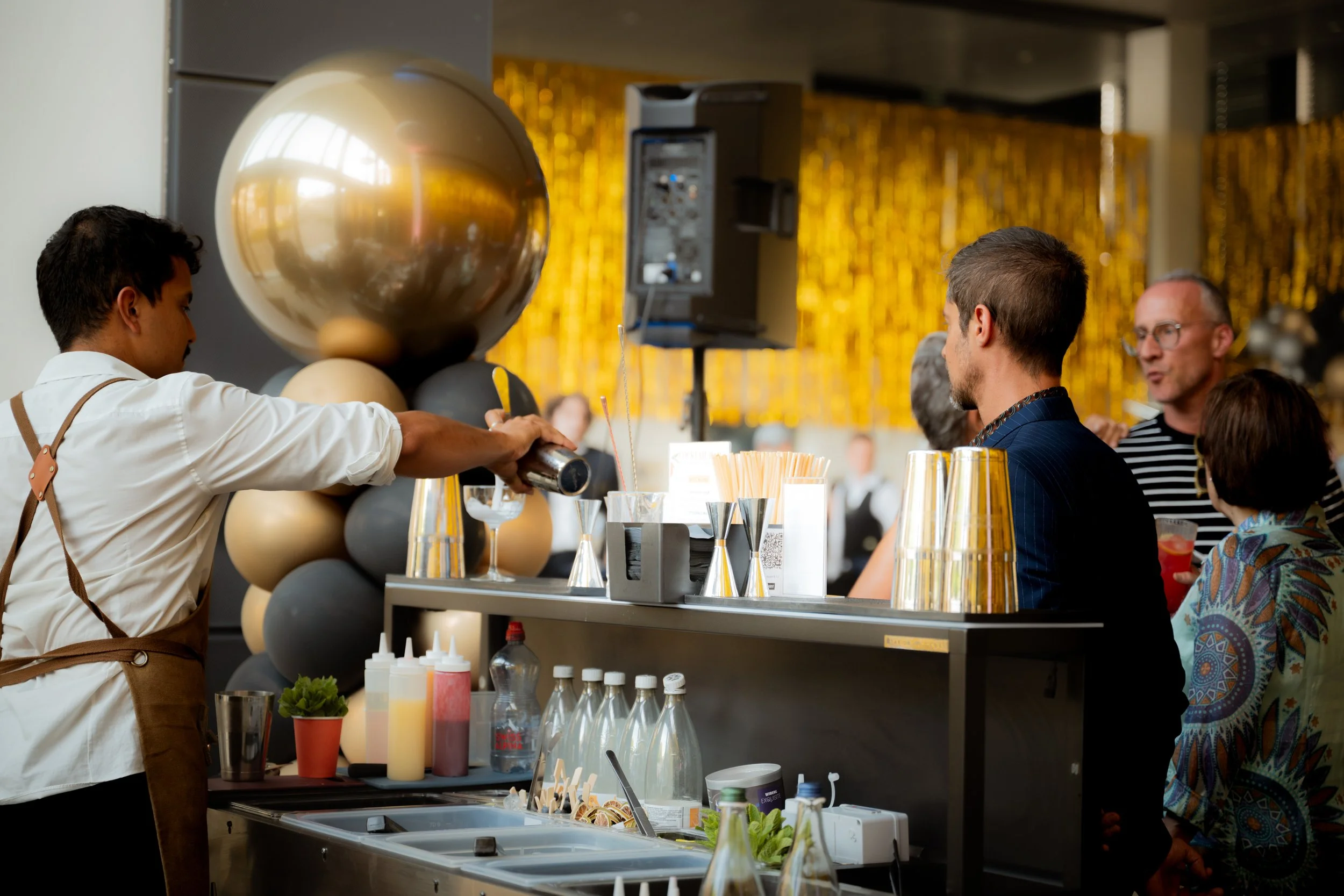 Le nombre de bartenders et la configuration du bar sont ajustés afin de garantir un service rapide et agréable pour tous les invités.